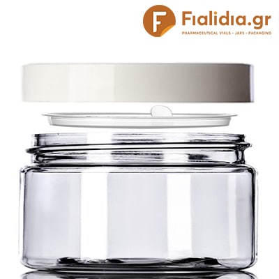 Βάζο PET 200ml Διάφανο με Καπάκι Λευκό Γυαλιστερό και παρέμβυσμα | Συσκευασία 12 τεμαχίων