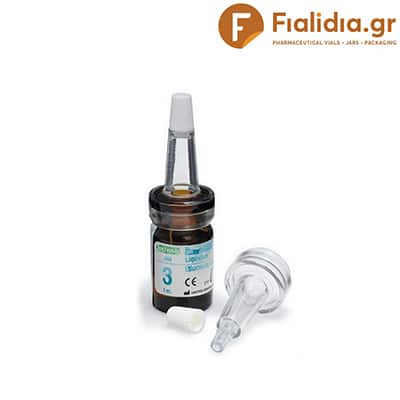Γυάλινο φιαλίδιο χωρητικότητας 10ml με λαστιχένιο καπάκι .