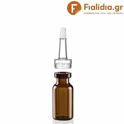 Γυάλινο φιαλίδιο χωρητικότητας 10ml με λαστιχένιο καπάκι και ρύγχος σιλικόνης τύπου dropper .