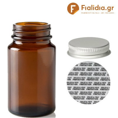 Φιαλίδιο Καραμελέ 100ml με ασημί πώμα Αλουμ. για Χάπια , Βιταμίνες & Συμπληρώματα Διατροφής | Συσκευασία 12 τεμαχίων