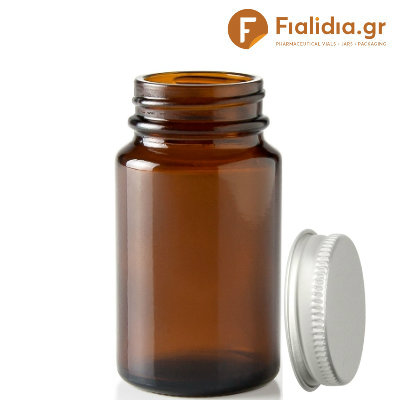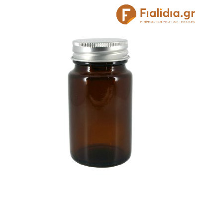 Φιαλίδιο Καραμελέ 75ml με Ασημί πώμα Αλουμ. για Χάπια , Βιταμίνες & Συμπληρώματα Διατροφής | Συσκευασία 12 τεμαχίων