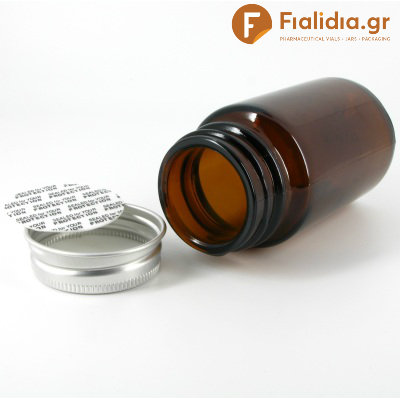 Φιαλίδιο Καραμελέ 150ml με Ασημί πώμα για Χάπια πολύ ιδιαίτερης εμφάνισης, Ιδανικό για χαπάκια , βιταμίνες και συμπληρώματα διατροφής .