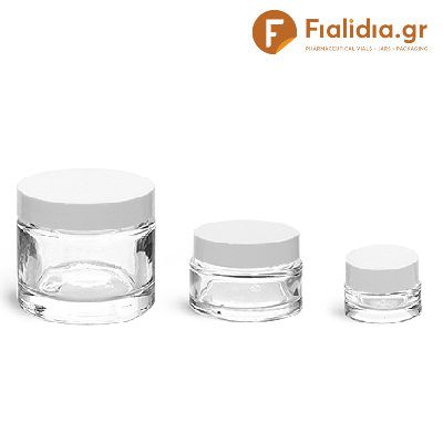 Το γυάλινο διάφανο βάζο 50ml με το λευκό γυαλιστερό καπάκι και παρέμβυσμα τύπου Press Liner είναι ιδανικό για κρέμες, κηραλοιφές και γενικώς για φαρμακευτικά & καλλυντικά σκευάσματα καθώς και όλων των τύπων κρέμες, κηραλοιφές και άλλων γαληνικών σκευασμάτων.